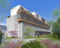 Funkcionalno objekt sledi svoji urbanistični intenciji po čim boljši integraciji z mestom in javnimi površinami, istočasno pa omogoča stanovanjem polno mero zasebnosti. Zato je funkcionalno objekt razdeljen na dva dela: južni – zasebni del, kjer je svetloba ter mirna in nizka okolica, kamor so orientirana stanovanja; ter severni – pol-javni del proti glavni ulici kamor so orientirane skupne površine. Specifika obravnavane parcele je ravno ta razcepljenost na mirno predmestno okolje na eni strani, ter na hektično mestno okolje na drugi, torej mora stavba reagirati na svojo okolico z dvema različnima »obrazoma« - južni, ki je zasebnega značaja svetlosti, topline, miru in zelenja; ter severni »obraz«, ki je mestotvornega značaja - kulturno reprezentativen in socialno komunikativen. Osnovno vodilo pri zasnovi objekta je bilo torej zasnovati čim bolj svetla stanovanja z velikimi terasami proti sončnemu in mirnemu jugu – z največjo stopnjo zasebnosti, ter na drugi strani omogočiti tudi družabno življenje v stavbi s prostori srečevanja, torej dodana vrednost socialne dimenzije s površinami za druženje, za igro otrok itd., ki komunicira tudi z uličnim življenjem.
