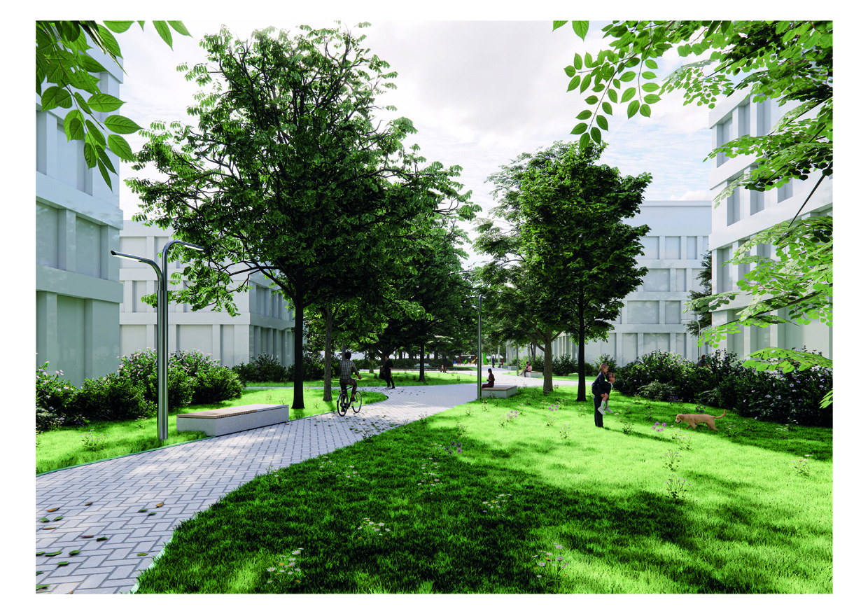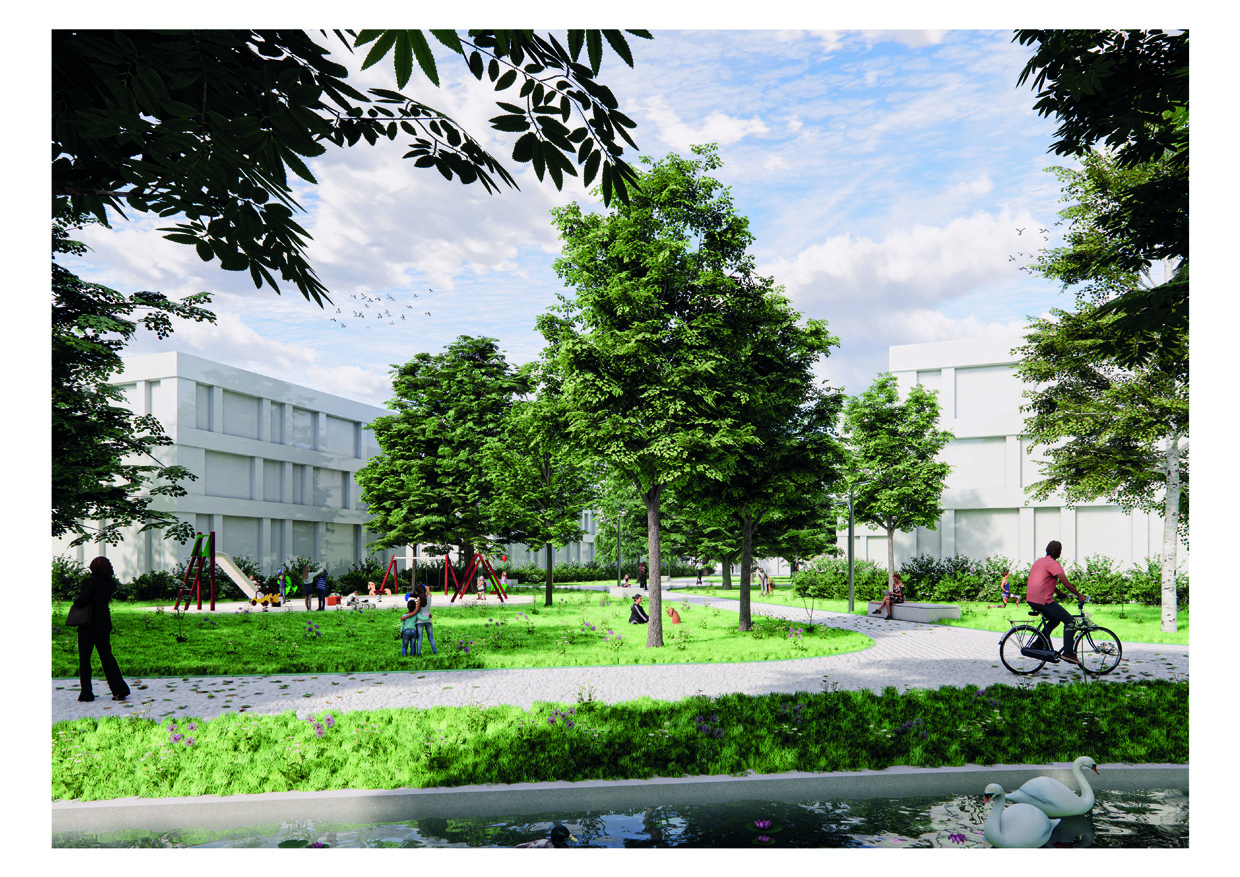 Leto 2025 Lokacija Domžale, Slovenija Tipologija Urbanizem Merilo 11,3 ha Status Vabljeni natečaj - 1. nagrada Avtorji Mateja Volgemut, Miha Volgemut, Nejc Vašl, Andraž Lovšin