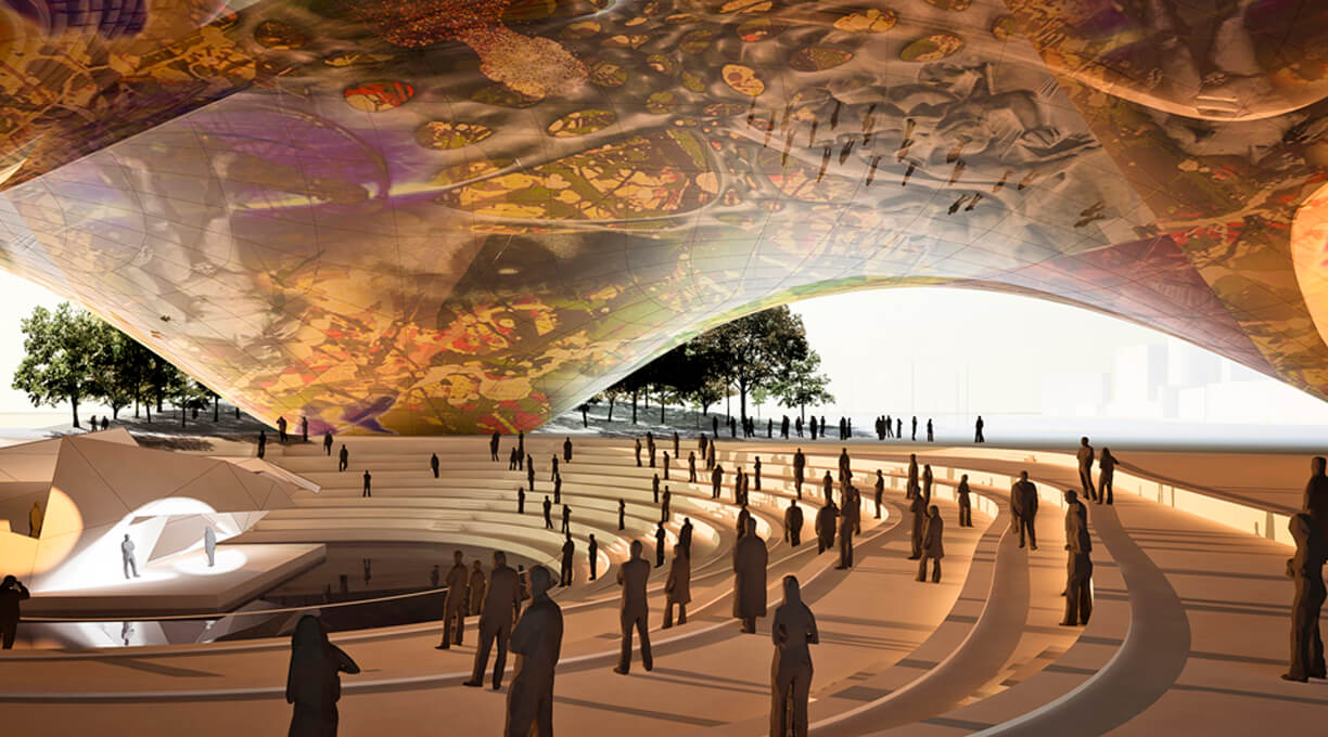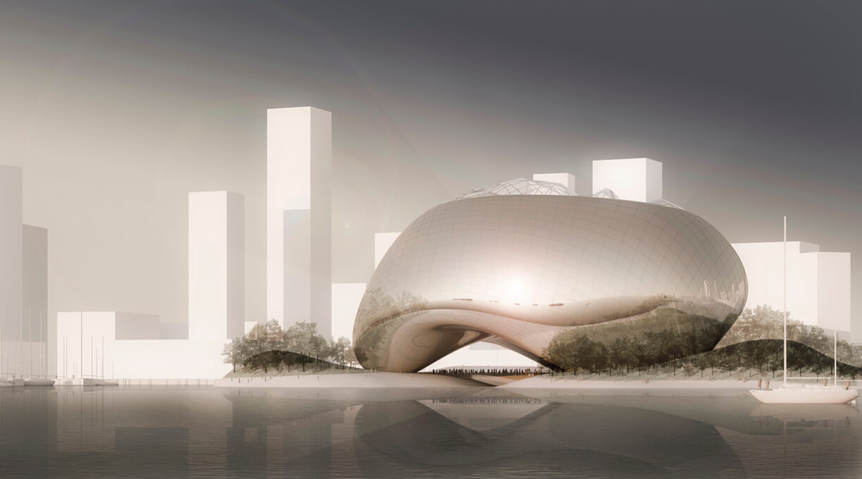 Predvidena lokacija za novo operno hišo je na umetnem otoku, torej voda je dominantna pojava.
