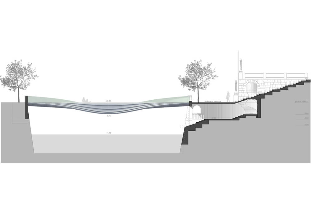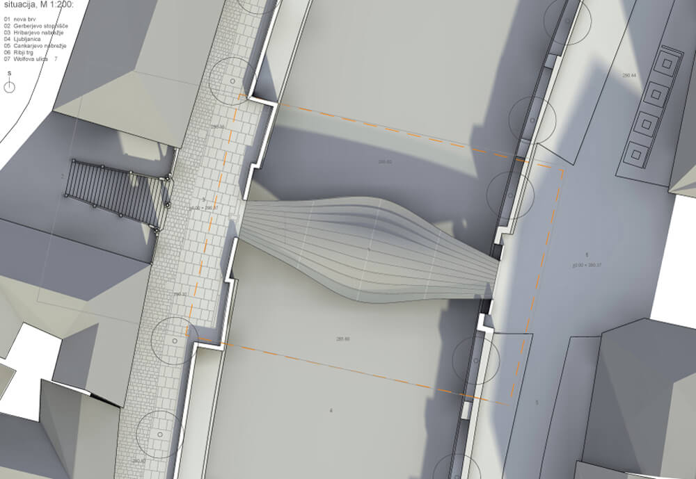 - ločitev tranzitne in uporabne funkcije mostu; “tribune” – posedanje in opazovanje rečnega dogajanja ter najbolj ikonične ljubljanske vedute. “Proslavljanje” prostora v funkciji.