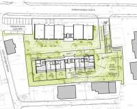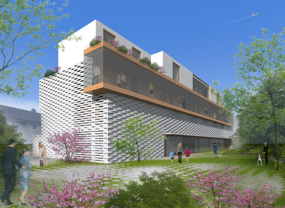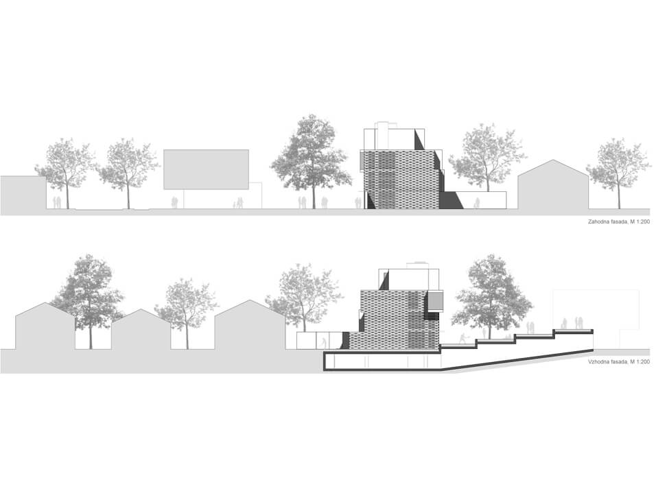 Funkcionalno objekt sledi svoji urbanistični intenciji po čim boljši integraciji z mestom in javnimi površinami, istočasno pa omogoča stanovanjem polno mero zasebnosti. Zato je funkcionalno objekt razdeljen na dva dela: južni – zasebni del, kjer je svetloba ter mirna in nizka okolica, kamor so orientirana stanovanja; ter severni – pol-javni del proti glavni ulici kamor so orientirane skupne površine. Specifika obravnavane parcele je ravno ta razcepljenost na mirno predmestno okolje na eni strani, ter na hektično mestno okolje na drugi, torej mora stavba reagirati na svojo okolico z dvema različnima »obrazoma« - južni, ki je zasebnega značaja svetlosti, topline, miru in zelenja; ter severni »obraz«, ki je mestotvornega značaja - kulturno reprezentativen in socialno komunikativen. Osnovno vodilo pri zasnovi objekta je bilo torej zasnovati čim bolj svetla stanovanja z velikimi terasami proti sončnemu in mirnemu jugu – z največjo stopnjo zasebnosti, ter na drugi strani omogočiti tudi družabno življenje v stavbi s prostori srečevanja, torej dodana vrednost socialne dimenzije s površinami za druženje, za igro otrok itd., ki komunicira tudi z uličnim življenjem.